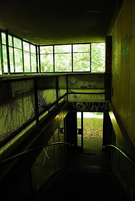 La lámina curva trabaja de forma simultánea con la losa plana de la planta principal y las barandas-vigas que la rodean, por medio de tabiques verticales. La planta baja consta de dos entradas ubicadas en los puntos de apoyo del puente. La transparencia de este acceso contribuye al movimiento de la obra, gracias a los ventanales que dejan al descubierto las escaleras apoyadas sobre el arco del puente.